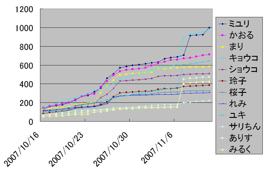 この時点でミユリ998票と大台まで後二票まで着ました。
