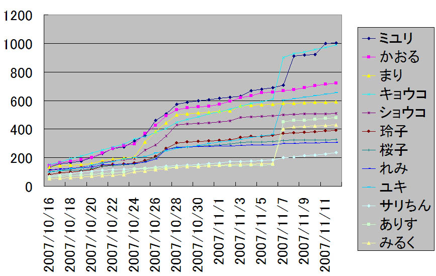 それはさておき、ミユリ1000票の大台突破おめでとー!
